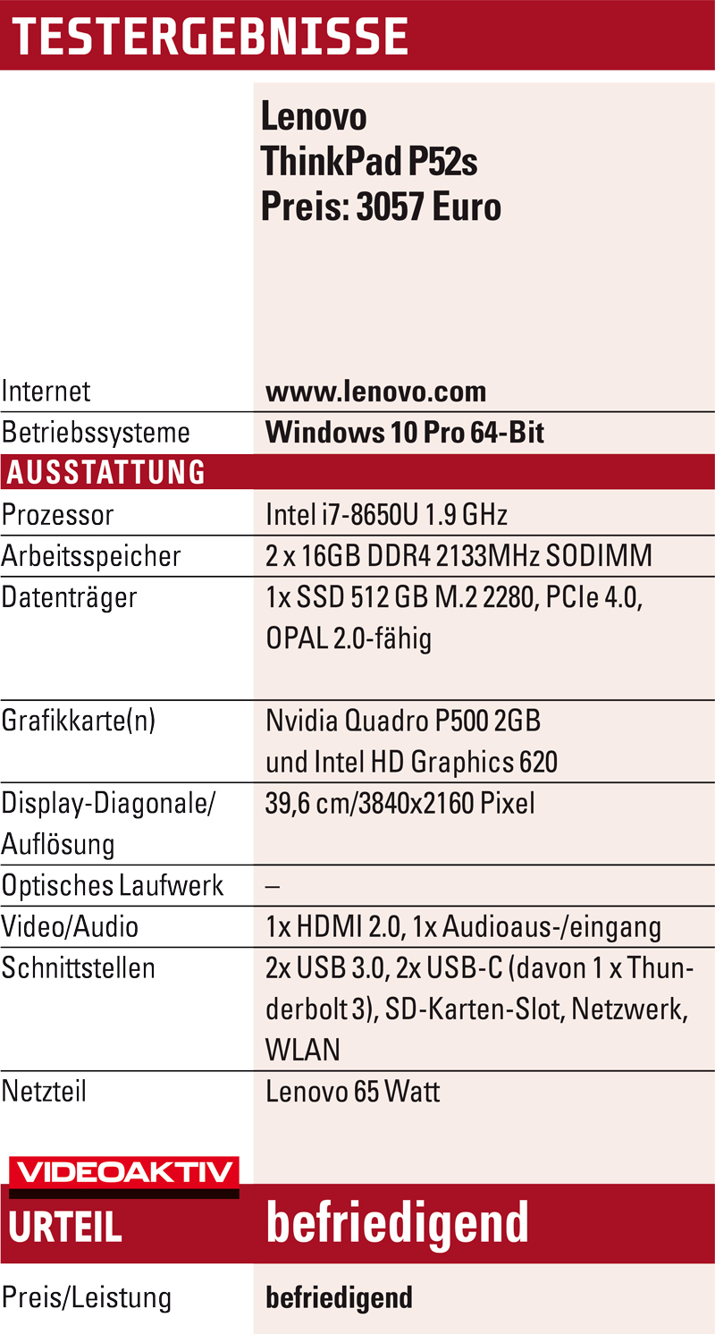 Lenovo ThinkPad P52s: mobile Workstation im Test mit vier Schnittprogrammen - Weite zur zweiten Seite