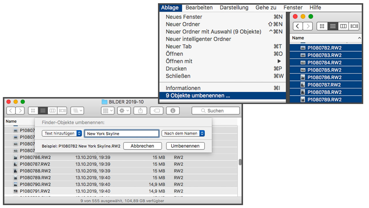 Beim Mac lassen sich im Finder gleich mehrere Dateien nach einem bestimmten Schema umbenennen.