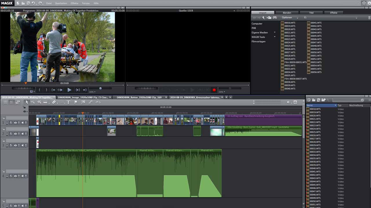 Zusätzlich wären eingebaute ND-Filter und ein richtiger Sucher ein Traum. Auf der Wunschliste stehen für die Zukunft noch ein richtiges Videostativ und ein Steadicam- System sowie eine Funkstrecke und ein weiteres Richtmikrofon. Die Postproduktion im Homeoffice wird mit Magix Video Pro X6 realisiert. Bei seinem letzten Projekt, einem Making-of zum neuen Image- und Ausbildungsfilm, saß Köhler acht Stunden vor seinen beiden 27-Zoll-Monitoren, bis er mit dem Ergebnis zufrieden war.