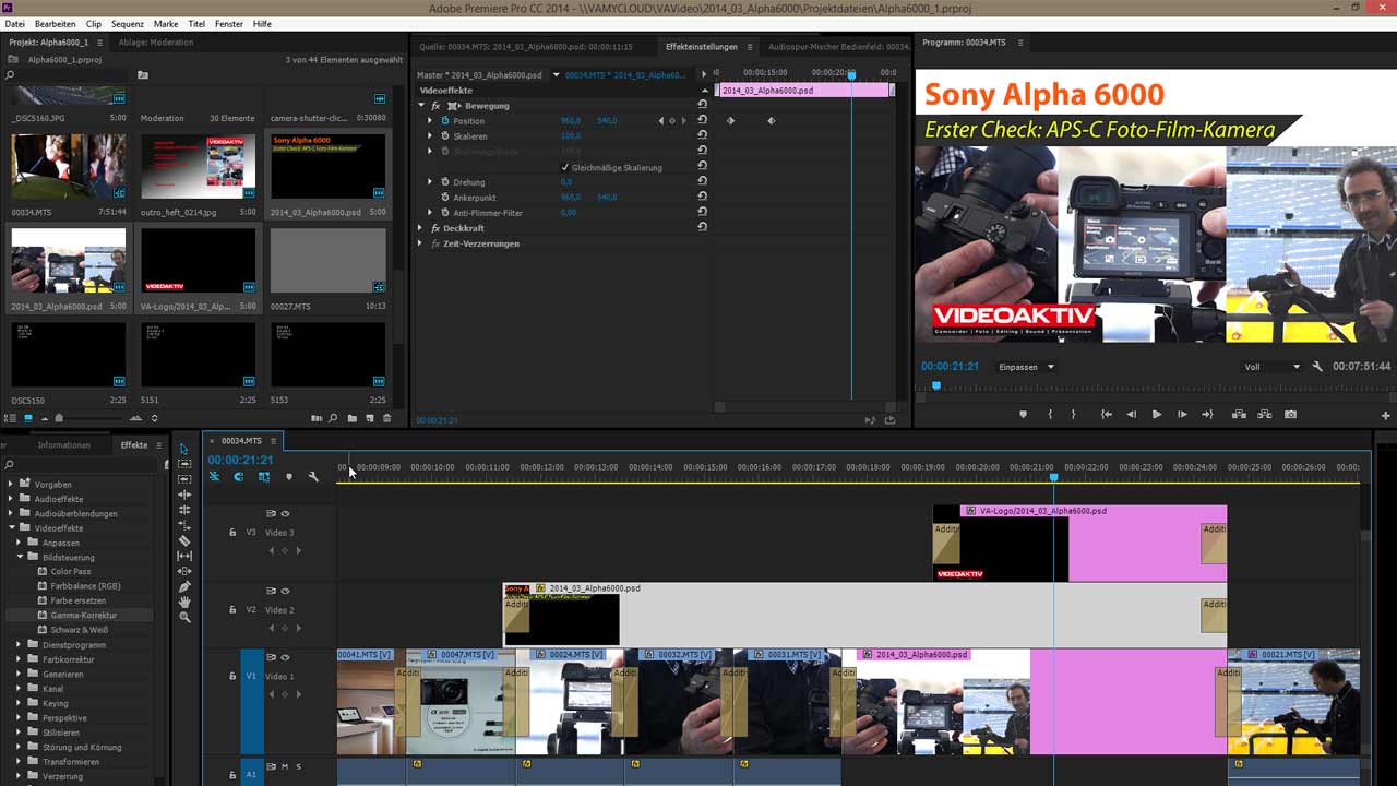 Da die Filme in erster Linie für die Videoplattformen und zum Einbinden in VIDEOAKTIV.tv entstehen, gab die Titel-Machart den Ausschlag fürs entsprechende Programm: Die Grafiken für unser zweimal in der Woche mit Artikeln befülltes „Praxis+Technik“ entstehen mit Photoshop – jetzt werden sie, nachdem die Grafiken auf der Webseite ins 16:9-Format umgestellt wurden, auch fürs Video verwendet.