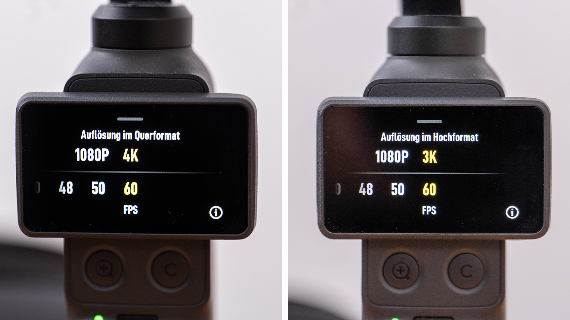 DJI belässt es bei der Osmo Pocket 4 mit einer maximalen Videoauflösung von UHD mit maximal 60 Bildern. Alternativ wählt man Full-HD – den 2,7K-Modus der Pocket 3 hat DJI gestrichen. Filmt man, indem man das Display wieder zurückdreht, Hochkant, reduziert die Kamera die Auflösung auf 3K – was durchaus eine Alternative sein kann, wenn man direkt einen Upload machen möchte. Wobei man dann auch gleich die Qualität reduzieren kann. Natürlich lässt sich über den Beschnitt der 3K-Aufnahme ebenfalls noch etwas der Bildausschnitt verändern, doch mehr Spielraum hat man aus unserer Sicht wenn man in 4K-UHD im Querformat filmt. Zugelegt hat die Pocket 4 bei den Bildraten, denn im eigenen Zeitlupemodus findet man nun Bildraten bis 240 Bilder. Allerdings darf man dann nicht mit D-Log filmen, sondern muss auf die klassische Aufzeichnung mit maximal 10-Bit-Farbtiefe gehen.