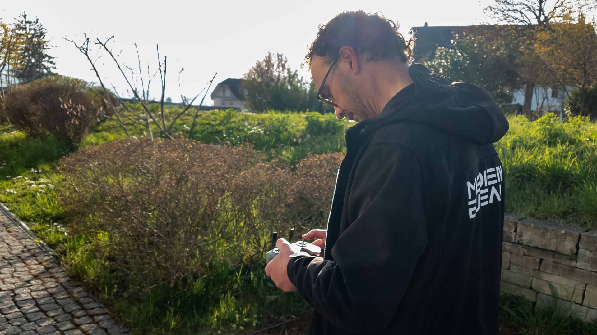 DJI bietet für die Avata 360 verschiedene Steueroptionen an – wobei man zwangsläufig am günstigsten wegkommt, wenn man schon eine Steuerung sein Eigen nennt und die Dohne allein für 459 Euro kauft. Mit der bereits länger bekannten RC2-Steuereinheit inklusive eigenem Monitor kostet sie 719 Euro und mit der Motion Fly More Combo und Goggles sowie dem Steuergriff liegt sie (mit Zusatzakkus) bei 939 Euro. Wir haben die Avata 360 sowohl mit der RC 2 als auch mit der virtuellen Brille geflogen – sowohl im Außenbereich also auch in Innenräumen. Festhalten kann man, dass beides bei uns gut funktioniert hat, der Installationsaufwand aber nicht ganz unerheblich ist. Die Drohne machte im Testzeitraum nahezu täglich Updates vom Fluggerät, aber auch von den Steuereinheiten. Wir waren stundenlang damit beschäftigt die passende Software aus dem Netz zu saugen, wobei dies durchaus auch an der frühen Leihstellung und der langsamen Datenübertragung aus Fernost gelegen haben mag.
