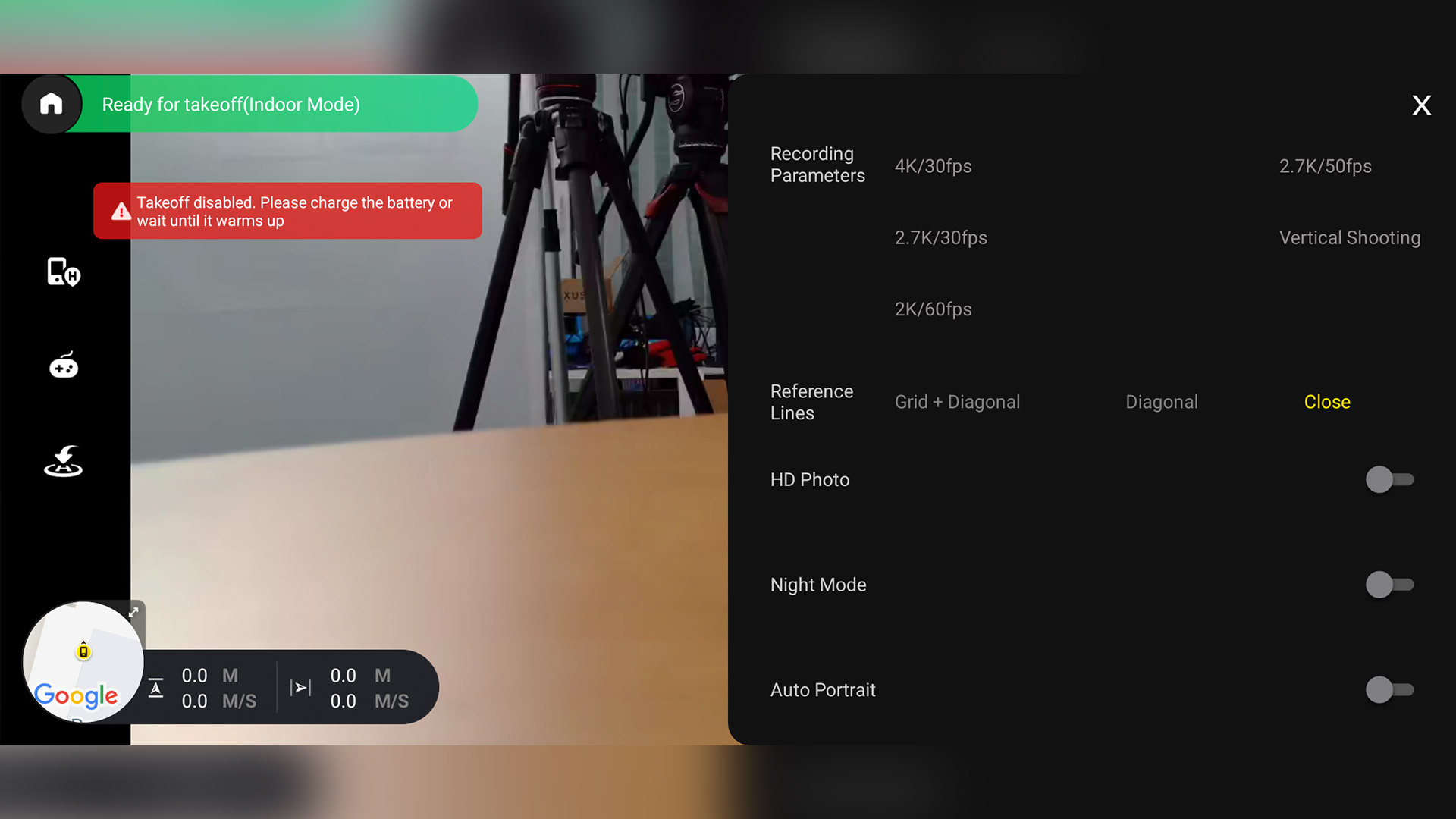 Die VCopter Falcon Mini ordet Auflsungen und Bildwiederholraten etwas wirr an. Was bleibt, ist die Wahl zwischen manueller und automatischer Kamerasteuerung. Die manuelle Kamerasteuerung ist während des Flugs aber nur eingeschränkt bedienbar.