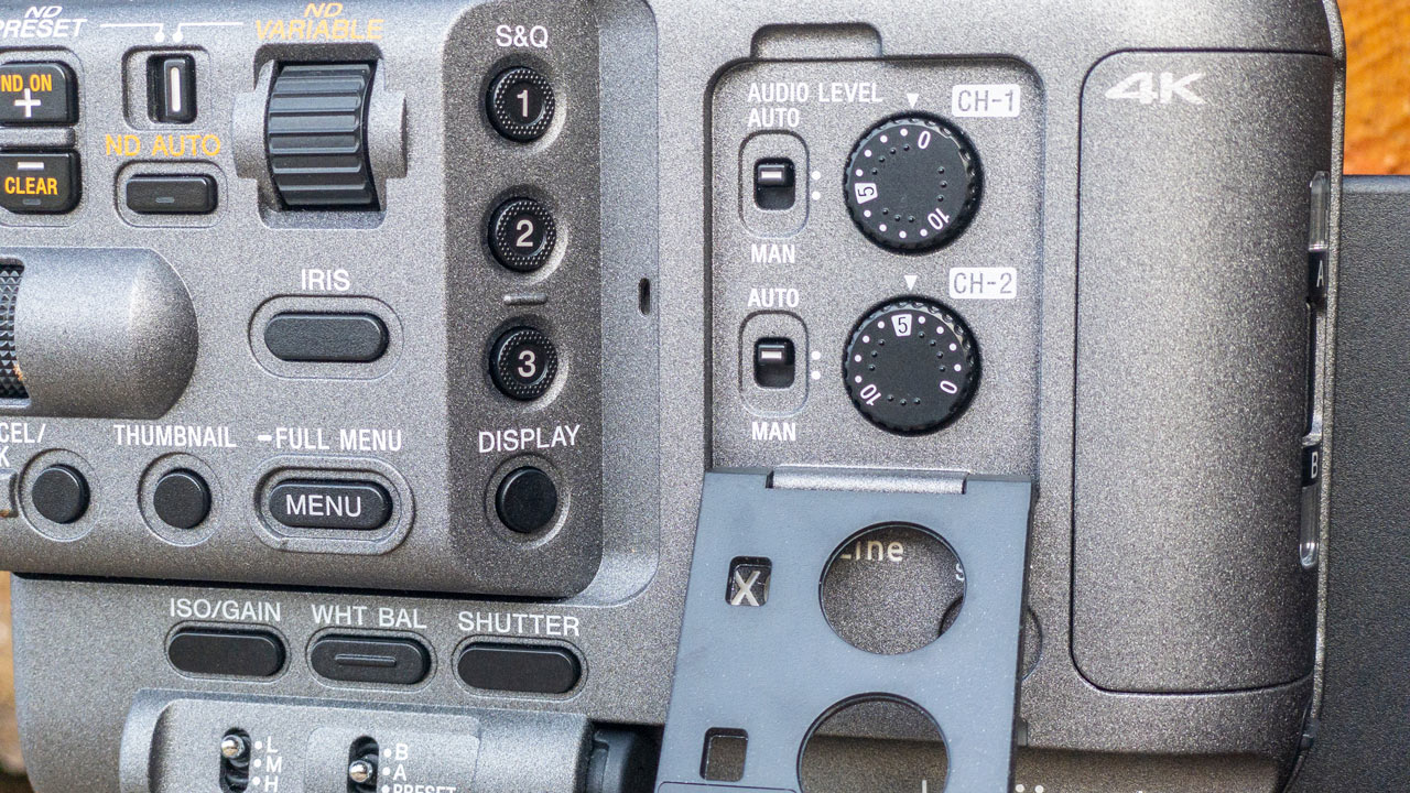 Die Tastenverteilung ist bereits seit mehreren Kameragenerationen bekannt und bewährt. Die Audiosteuerung hat allerdings nur für zwei der vier Kanäle Regler.
