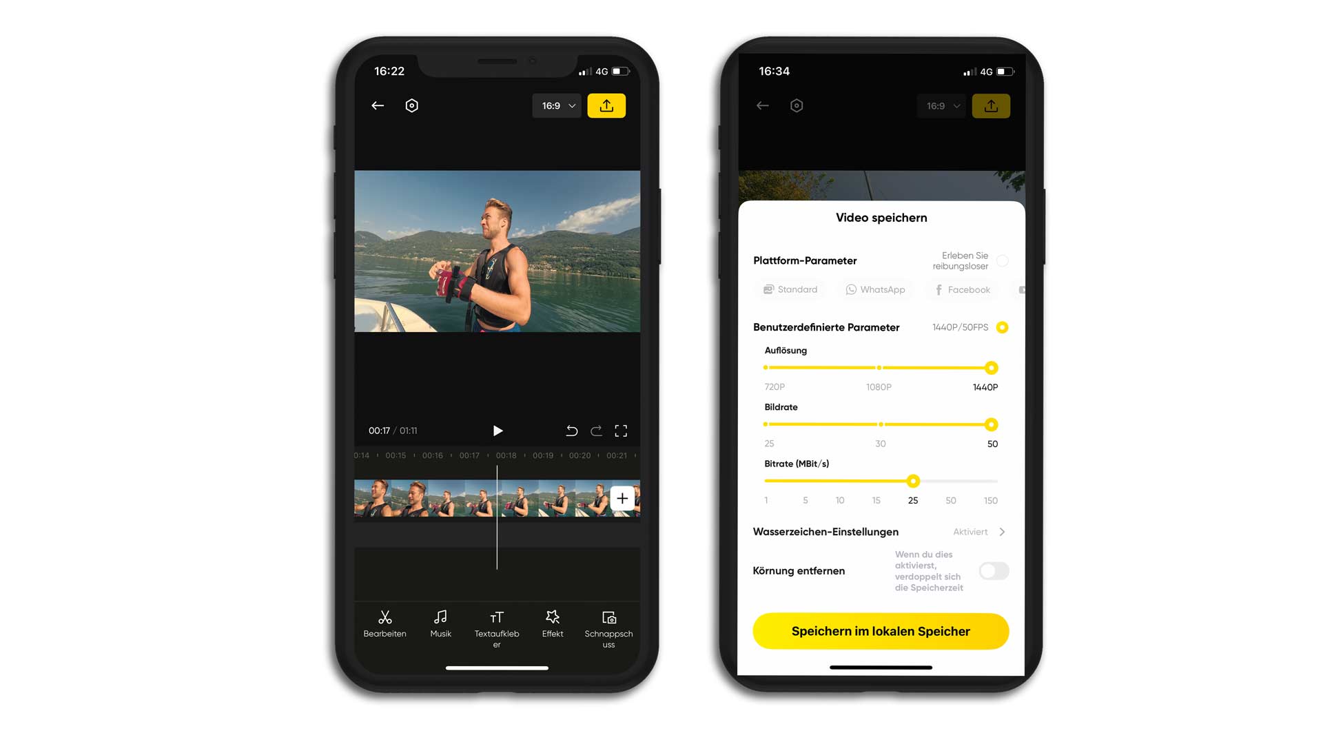 Die App bietet Schnittfunktionen, so dass man kurze Sequenzen zu einem echten kleinen Film zusammenschneiden und direkt auf Social-Media hochladen kann.