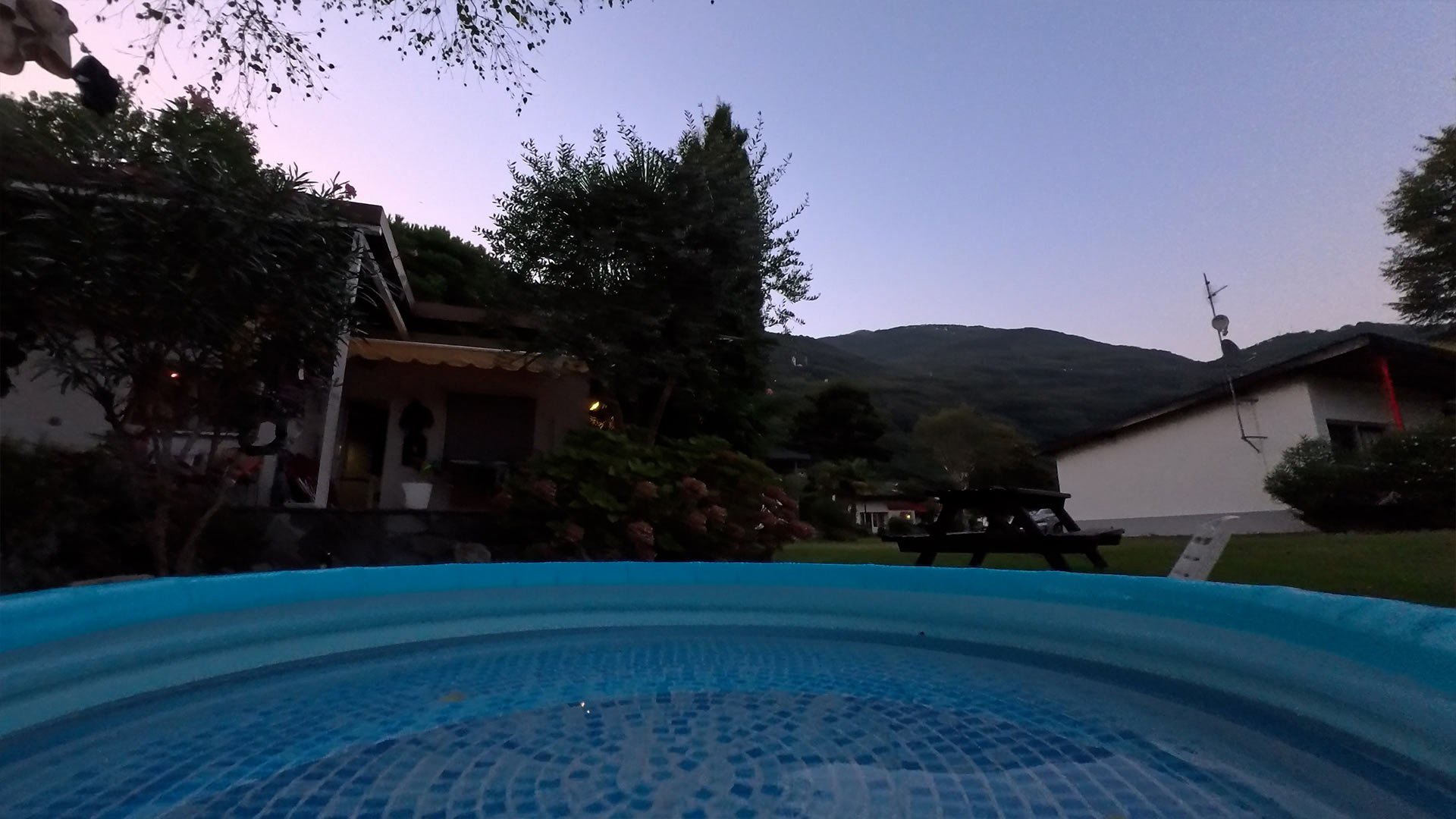 Schon bei Dämmerungsverhältnissen kommt die Insta360 Go Ultra an ihre Grenzen und zeigt wegen der Rauschunterdrückung ein stark detailreduziertes Bildt.