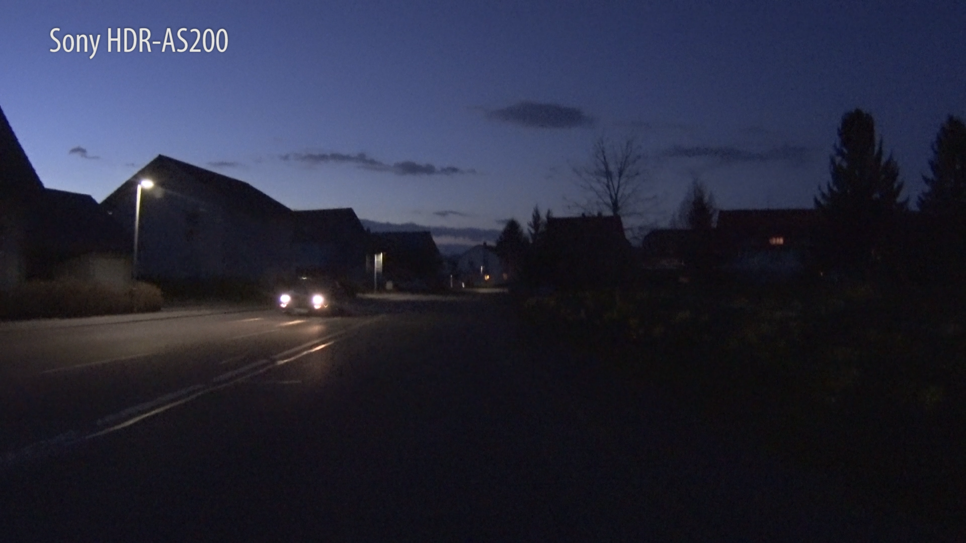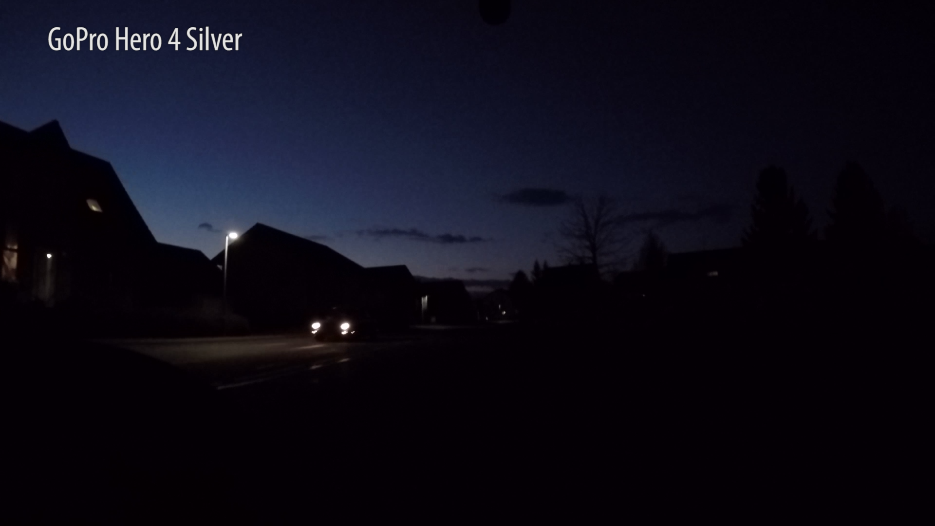 Im Vergleich dazu liefert die GoPro bei Dämmerung bereits ein sattes Schwarz. Vom Auto bleiben gerade mal noch die Lichter übrig. Beim Bildrauschen gibt's dennoch kaum einen Unterschied.