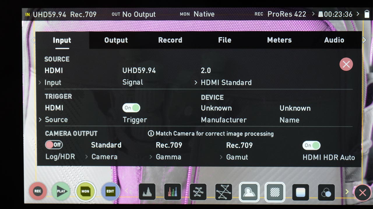 Aufgezeichnet habe ich in UHD mit 59,94 Bilder pro Sekunde als ProRes 10 Bit 4:2:2. Dank der 500GB-SSD spielt das Thema Speicherplatz dabei kaum eine Rolle.