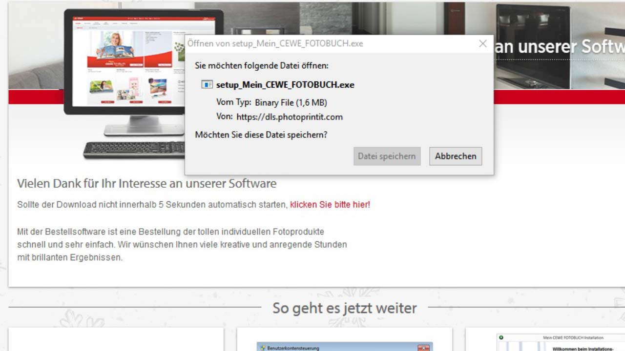 Der Download hat sehr gut funktioniert. Unklar war mir allerdings, ob die Bestellsoftware, dieselbe ist wie die Cewe-Fotobuch-Software, weshalb ich hier erst etwas suchen musste.
