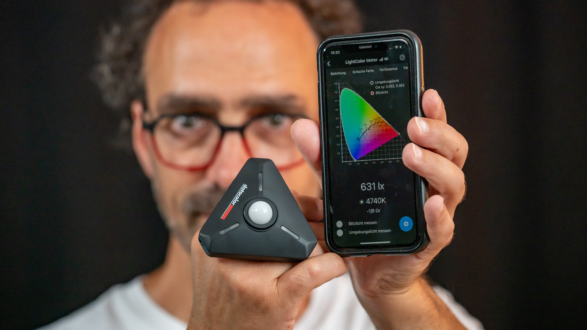 Der Trick dabei ist, dass der Spyder LightColor Meter kein reiner klassischer Belichtungsmesser ist, sondern eine Messkalotte hat, die auch Farbwerte messen und somit einen Spectrometer ersetzen kann. Dabei steckt Datacolor die Intelligenz und die Anzeige der Messwerte in eine App. Der Vorteil dabei: So kann man eigene individuell anpassbare, detaillierte Anzeigen erstellen. Damit erhält man eine übersichtliche Darstellung aller Parameter und muss sich keine Messwerte mehr zurufen. Da der Messkopf getrennt von der App-Anzeige ist können Kameraleute und Lightoperator zentral mit dem Smartphone stehen, parallel die Lichtwerte sehen und das Licht regeln. Bei aufwändigeren Setups lassen sich auch mehrere Messköpfe mit der App verbinden. Doch für einen genauen Überblick über Funktionen und Arbeitsweise empfehlen wir unseren ausführlichen Praxistest.