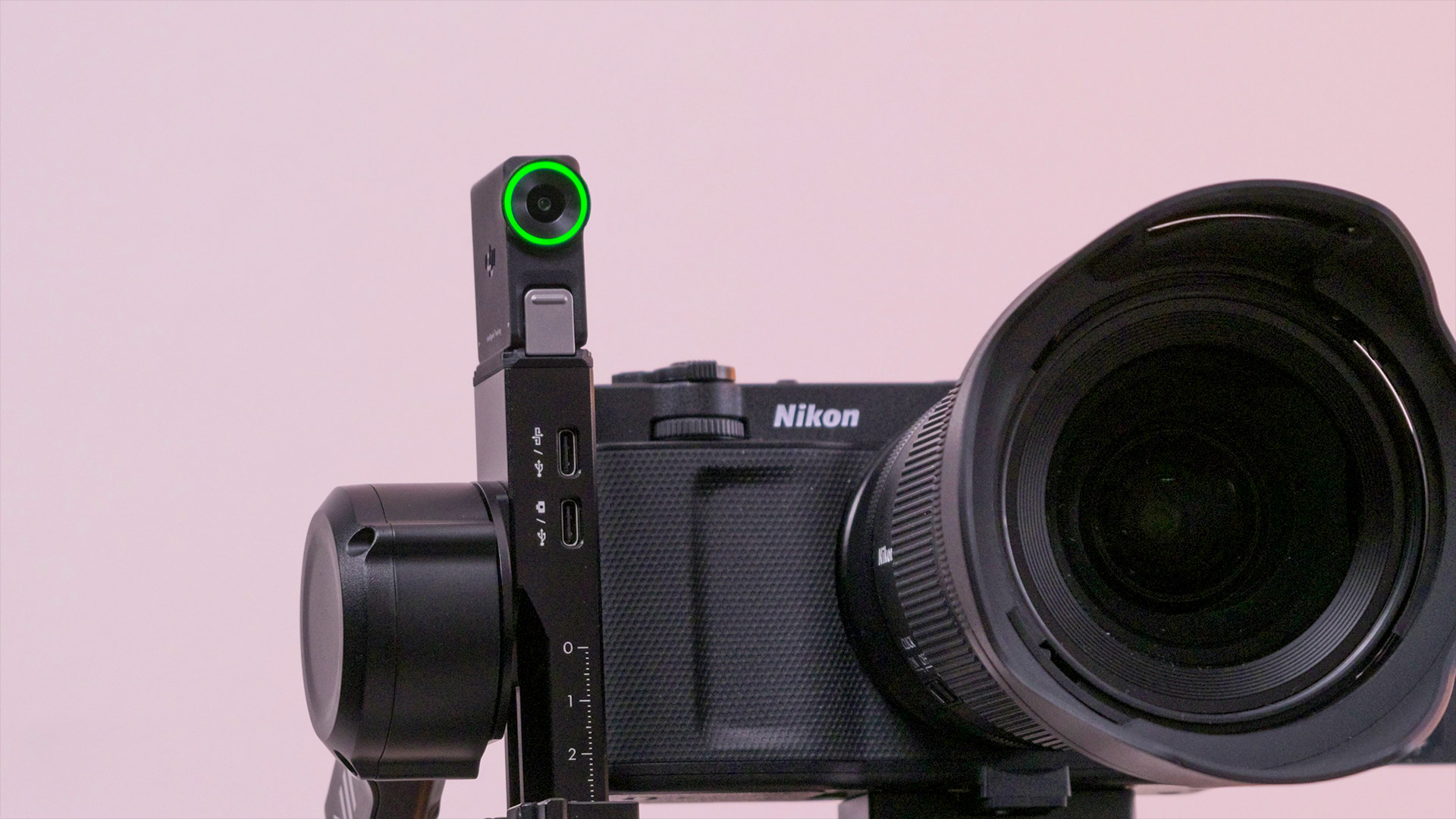 Das kleine Trackingmodul muss nur aufgesetzt werden und wird vom Gimbal mit Strom versorgt. Das Bild sieht man auf dem Display des Gimbals.