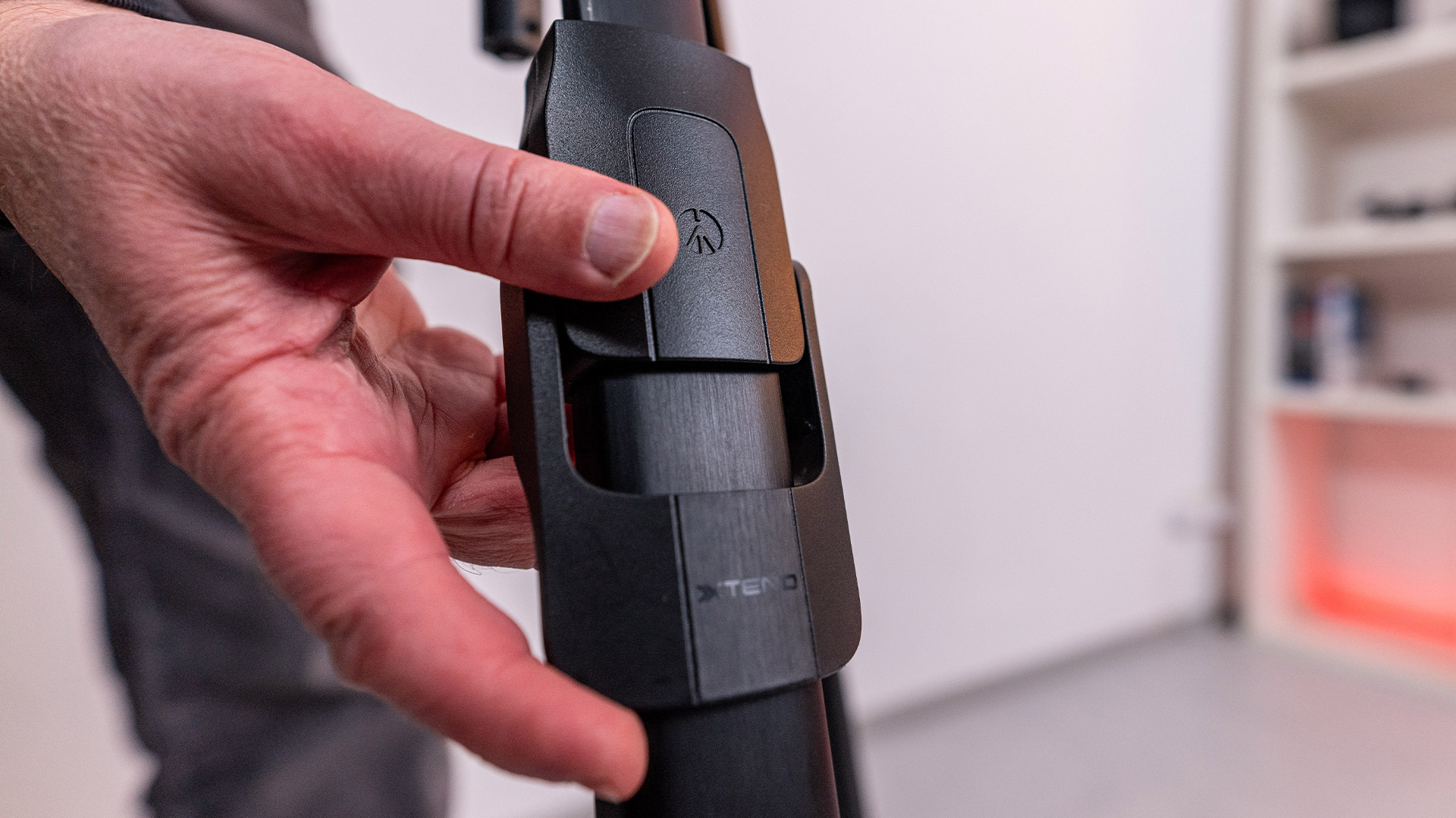 Wer auf Bodenniveau herunter will, muss das untere Teil der Mittelsäule abnehmen, was durch den Schnellverschluss gut funktioniert.