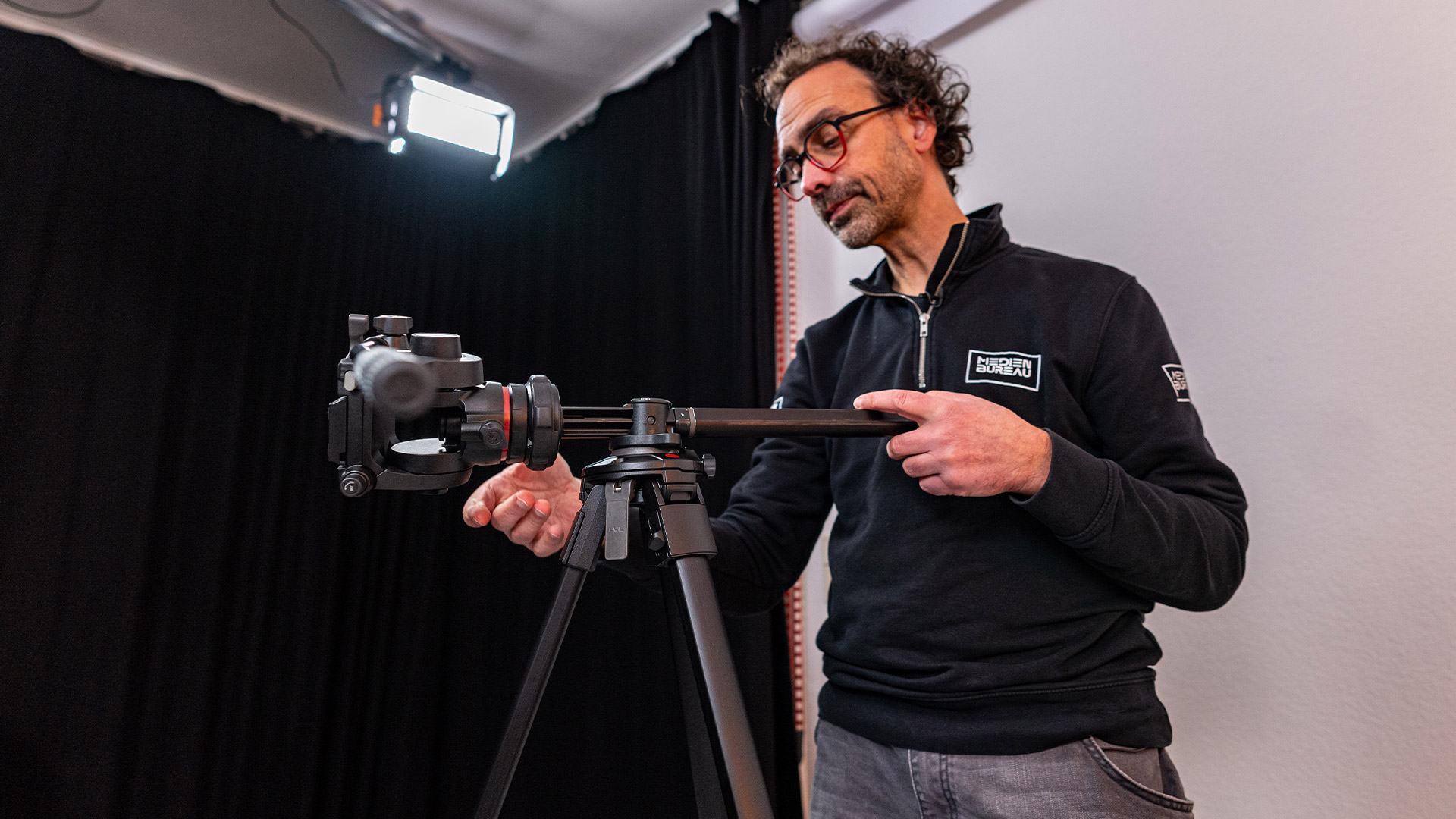 Dass Manfrotto knapp kalkuliert hat, merkt man dann an der Ausstattung, denn für beide Schwenkebenen gibt es lediglich eine Arretierung und leider keine einstellbare Friktion. Zwar lässt sich mit der Verriegelung auch etwas die Friktion beeinflussen, aber eben vergleichsweise undefiniert und ungenau. Bei gelöster Verriegelung ist die Friktion, angepasst auf die geringen Kameragewichte, vergleichsweise gering. Die Konterbalance als Gewichtsausgleich für das Kameragewicht gibt Manfrotto als „variable“ an – meint damit aber, dass man sie komplett ausschalten oder eben einschalten kann. Angepasst ist sie auf 2,4 Kilogramm, was für unsere eingesetzten Kameragewichte eher sogar etwas zu viel war. Dennoch klappten langsame Schwenks bei uns stets problemlos. Bei schnelleren Verfolgungen wird es etwas schwieriger und Querbewegungen, bei denen beide Ebenen bewegt werden, sind dann tatsächlich nur selten perfekt hinzubekommen.