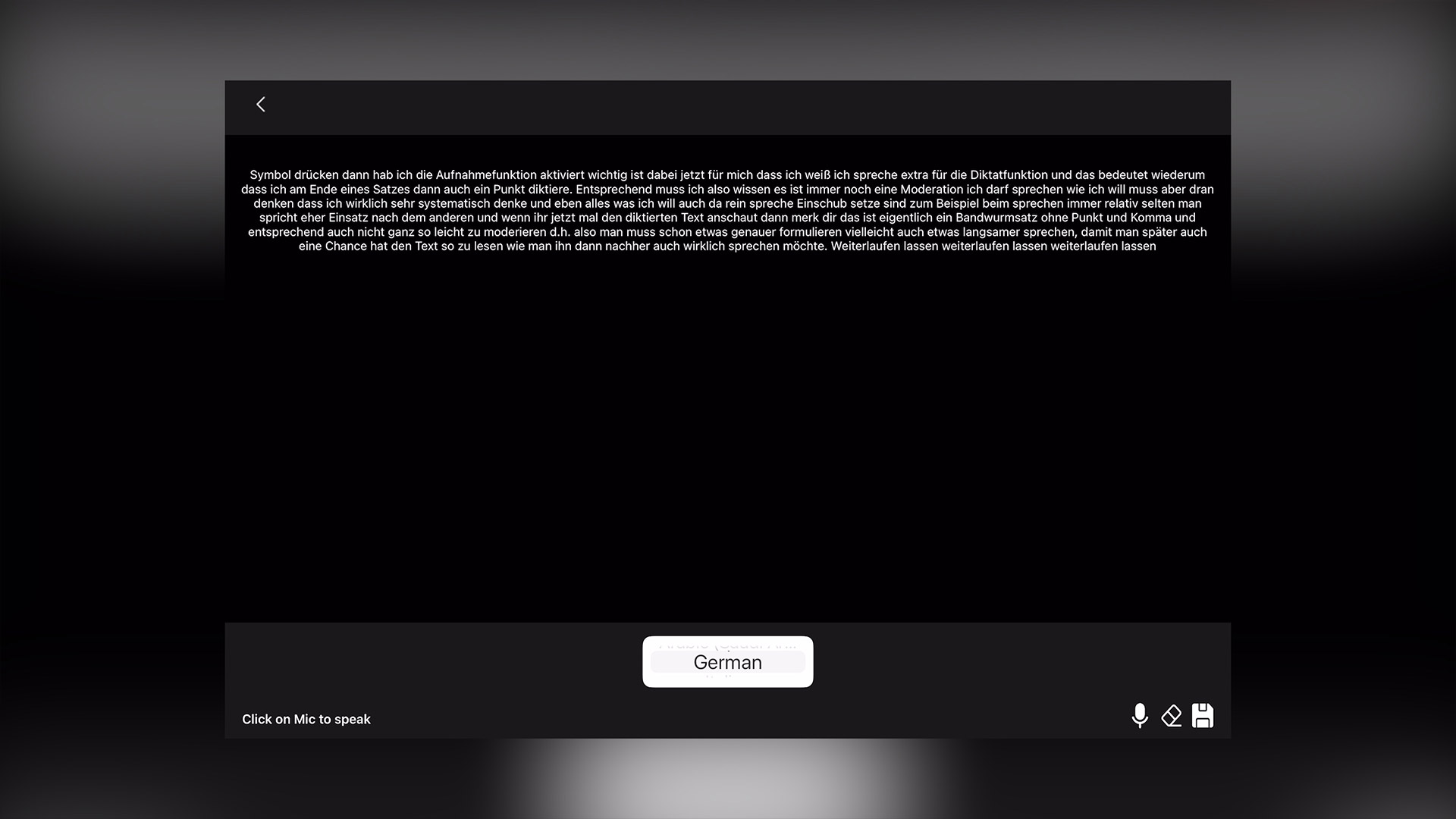 Genau deshalb ist es vielleicht in einem ersten Schritt leichter den Text zu diktieren. Dazu bietet die App eine eigene Funktion. Auch Diktieren will gelernt sein, denn nach Betonung setzt die App keine Satzzeichen. Punkt und Komma müssen also ebenfalls diktiert werden, damit der Text nicht ein einziger Bandwurm ist. Trotzdem ist es so leichter seinen Stil zu bewahren. Der Trick ist es, etwas langsamer zu sprechen und lieber Überlegepausen zu machen, denn Pausen interessieren während des Diktierens nicht. Man kann also ganz ohne Hektik sauber formulieren. Um eine Nachbearbeitung kommt man zumindest anfangs nicht umhin, doch klappt so die Aufbereitung seines Textes deutlich schneller als beim reinen Schreiben. Schneller ist es nur noch wirklich seine Stichpunkte zu diktieren – und nur mit diesen zu arbeiten. Für geübte Moderatoren die den Teleprompter nur als professionelle Gedankenstütze benötigen eine der leichtesten Aufgaben.