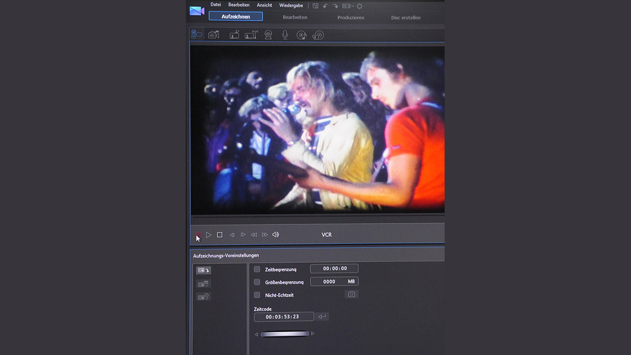Glücklicher Umstand: Der Super-8-Film dieses Bandauftritts Mitte der 1970er- Jahre war bereits mal auf Mini-DV-Tape aufgenommen worden. Das lässt sich über Firewire zugespielt mit der Schnittsoftware im PC aufzeichnen.