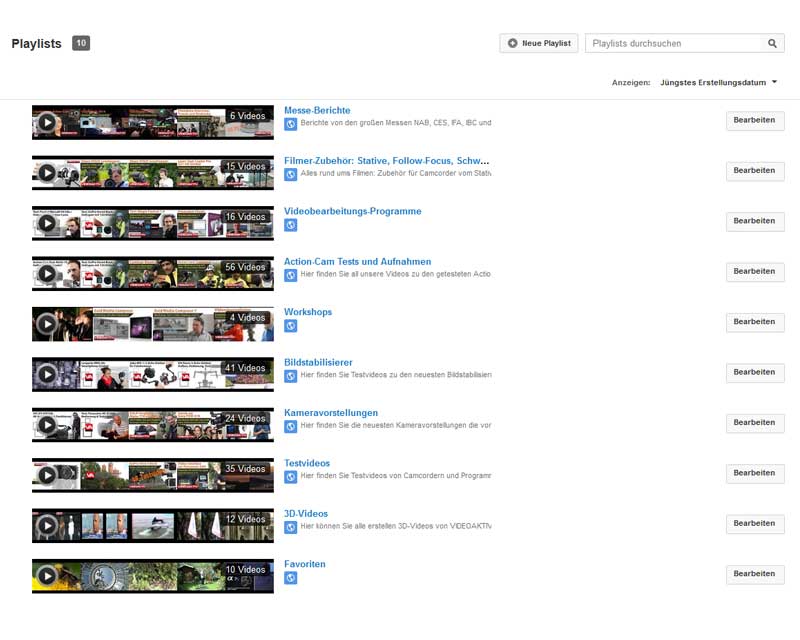Plant man mindestens ein Video pro Woche, sollte man im „Videomanager" Playlisten anlegen, da man sich sonst schnell in den eigenen Inhalten verirrt.