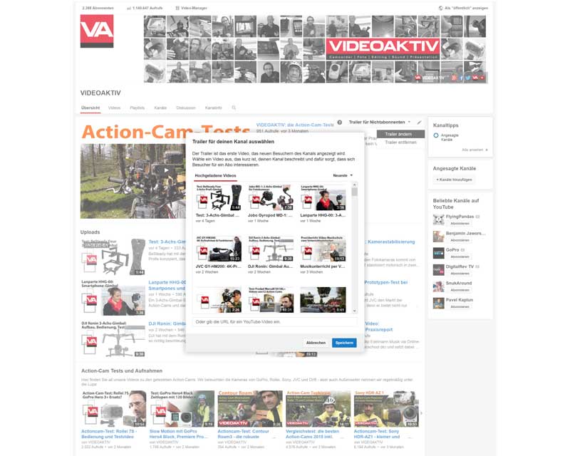 Wer mit einem eigenen Kanal Erfolg haben will, sollte einen „Kanal-Trailer" einrichten: Das ist das Video, das obenan steht und die Zuschauer begrüßt.
