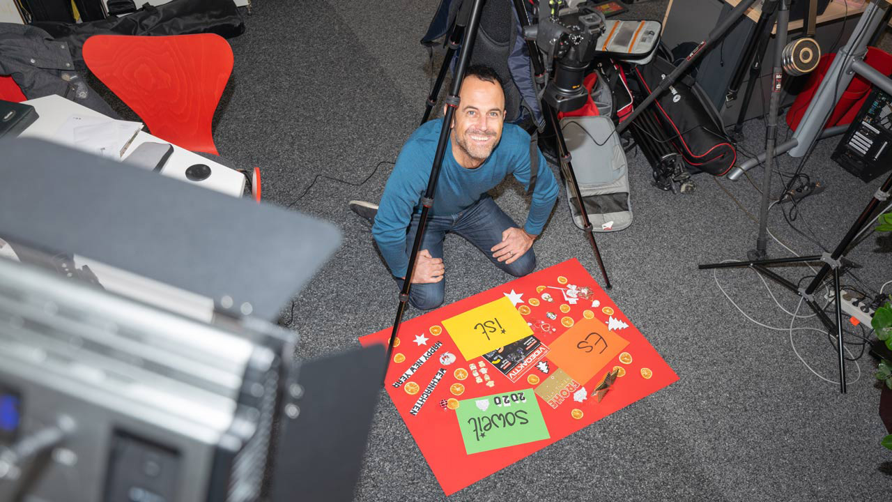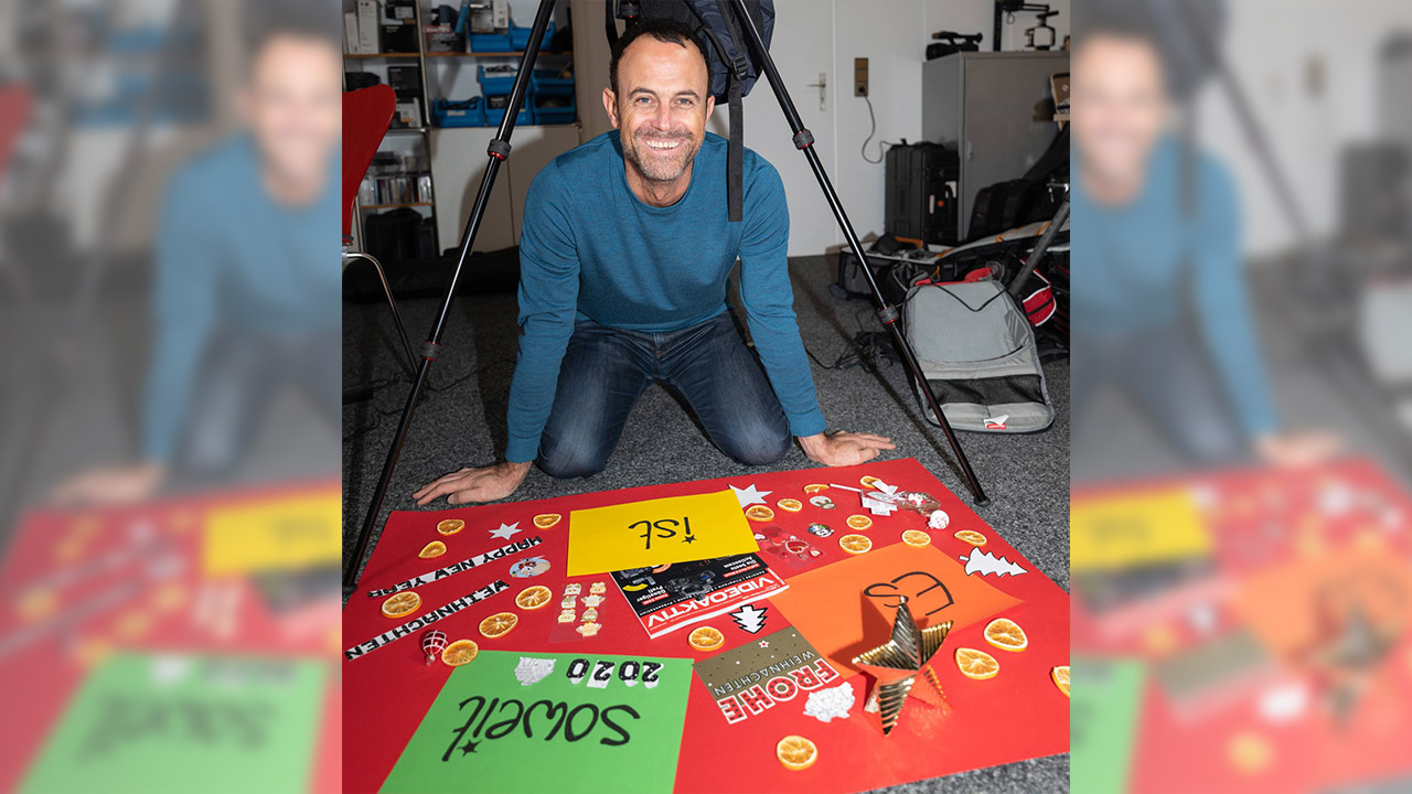 Eigentlich wollte Volker ja nur ein paar Tipps haben, damit er seine Weihnachtsbotschaft mal eben als StopMotion umsetzen kann. Wie das ganze aussehen sollte, das war als Idee längst fertig. Doch was muss man beachten? Nach gut einer halben Stunde war Volker schlauer und zockelte, gegen den Ratschlag des Autors, mit einer geliehenen Lumix FZ2000 nach Hause. Am nächsten Tag war Volker dann noch schlauer: „Joachim, Du hast recht, das wird so nix“. Denn neben der Vorplanung und dem nötigen Grundwissen braucht es auch etwas Equipment.Bestens ausgestattet mit weihnachtlichem Tand, traf Volker also am nächsten Tag in den Redaktionsräumen ein. Dazu noch ein roter Hintergrundkarton und die Botschaft auf verschiedenfarbiges Tonpapier per Hand geschrieben.