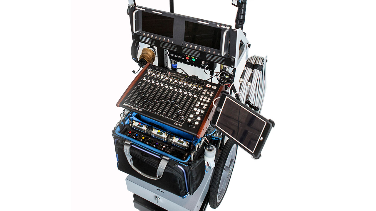 Filmprofis bauen um ihren Fieldrecorder herum oft ein komplettes mobiles Tonstudio. In der Tasche steckt hier ein Modell von Sound Devices.