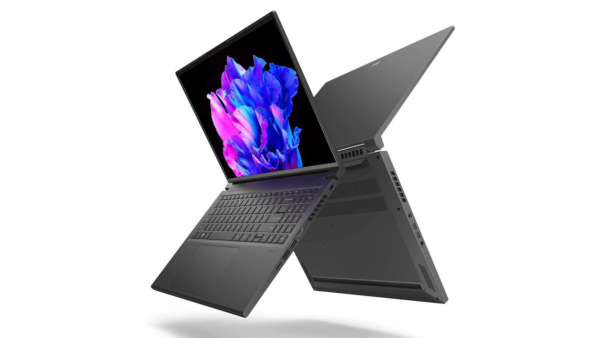 Das Acer Swift X 16 hat ein farbtreues OLED-Display mit 500 nits maximaler Helligkeit integriert und offeriert Anschlüsse für USB-C, HDMI 2.1 und bietet auch Wi-Fi-6E-Konnektivität.