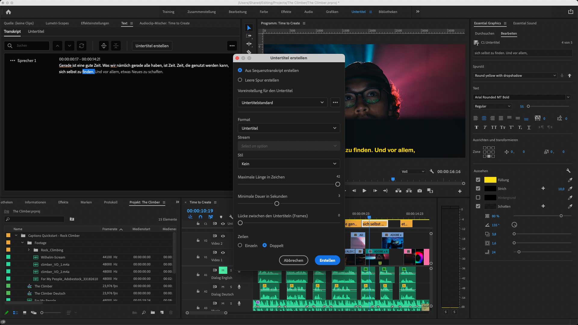 Mit dem Text lässt sich dann ein Untertitel erstellen, der sich dann noch individuell bearbeiten lässt.