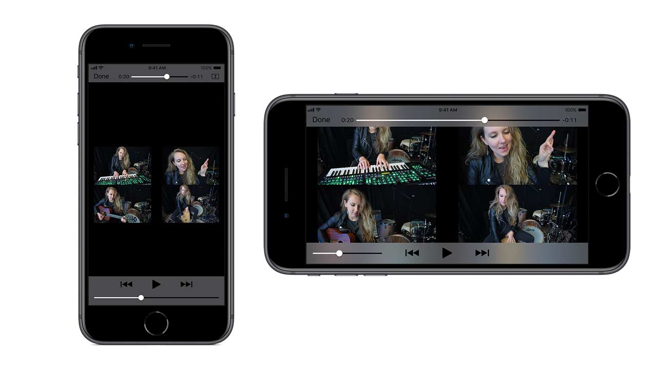Die 4XCAMERA-App synchronisiert bis zu vier Videoquellen, wobei ...