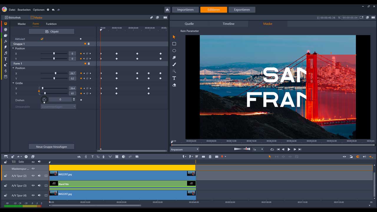 Corel Pinnacle Studio 23 Ultimate: Maskenfunktion und Color Grading