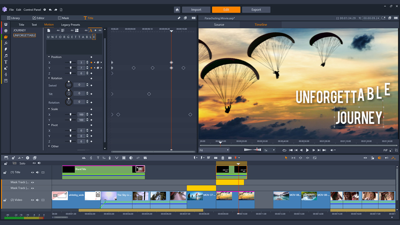 Keyframes lassens ich in Pinnacle Studio 24 jetzt als Gruppe auf andere Clips und Elemente übernehmen um Animationen schneller übertragen zu können.