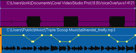 Mit der Audio Ducking-Funktion übernimmt die Software automatisch eine Tonabsenkung, wenn ein O-Ton oder Kommentar in anderen Tonspuren endeckt wird.