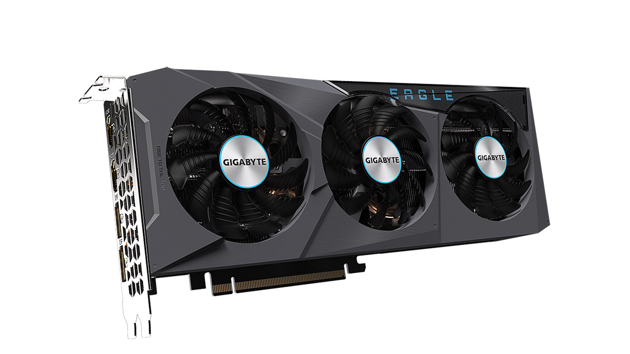 Die Gigabyte Radeon RX 6700 XT EAGLE 12G arbeitet mit AMDs neuem Mittelklasse-Chip Navi-22 und stellt 12 Gigabyte GDDR6 RAM bereit.