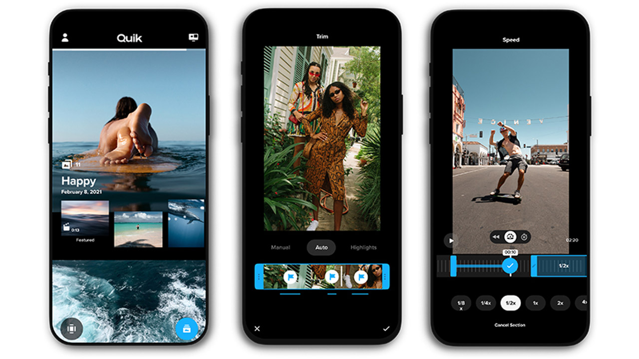 Quik ist für iOS sowie Android verfügbar und unterstützt Foto- und Videoaufnahmen aller aktuellen Smartphones und Kameras, inklusive GoPros und DSLRs.