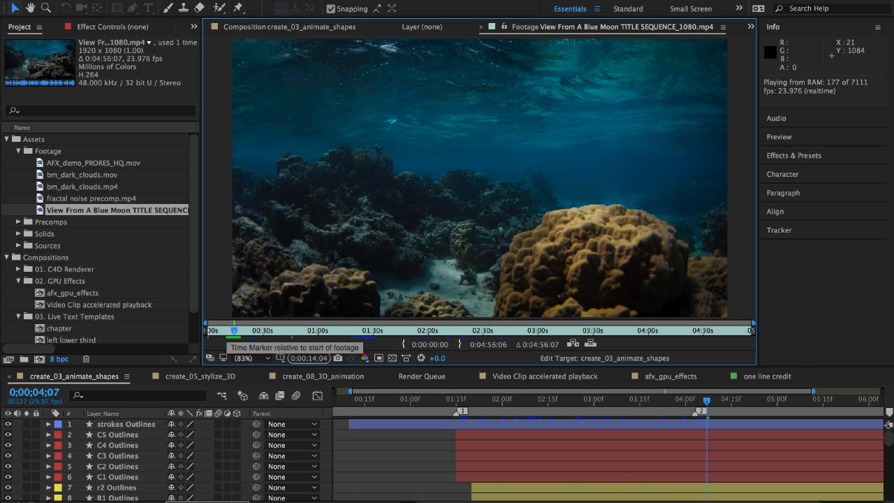 Die Vorschau wird in After Effects CC ohne nötige Zwischenspeicherung in Echtzeit ausgegeben werden.