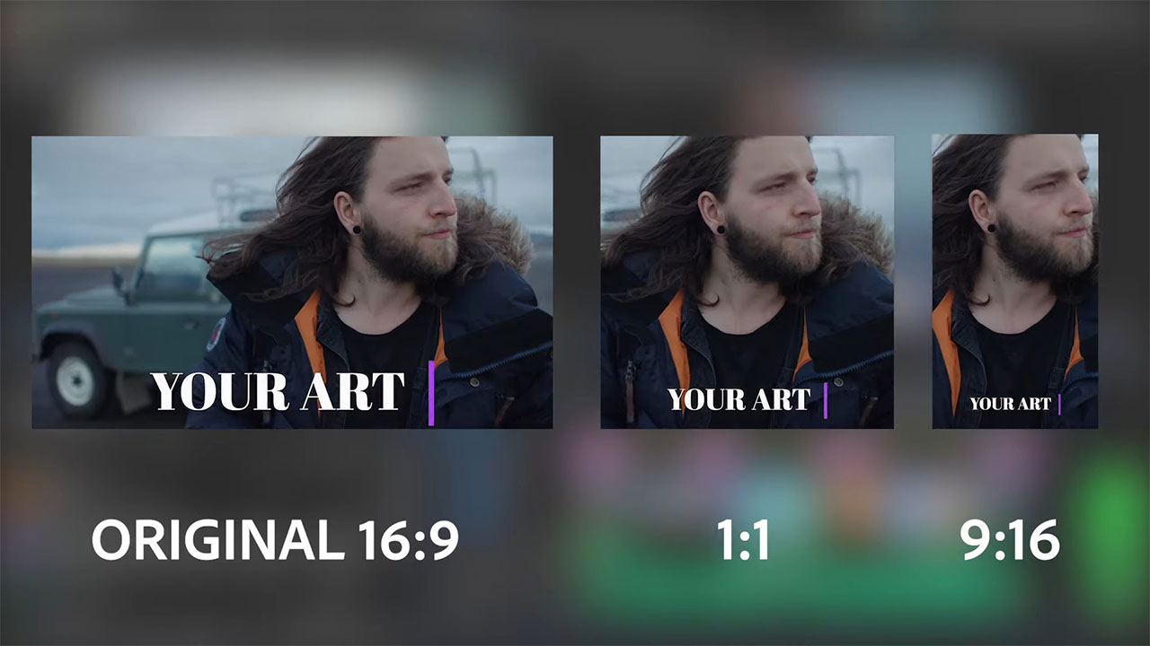 Adobes Auto Reframe in Premiere Pro CC passt automatisch das Seitenverhältnis eines bestimmten Videoclips an. Dabei werden auch Titelinformationen mit skaliert.