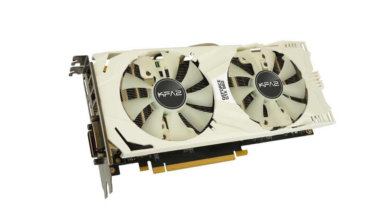 Die Geforce GTX960 EXOC von KFA2 ist von Werk ab übertaktet und kommt mit vier Videoanschlüssen für DVI, HDMI und DisplayPort 1.2.