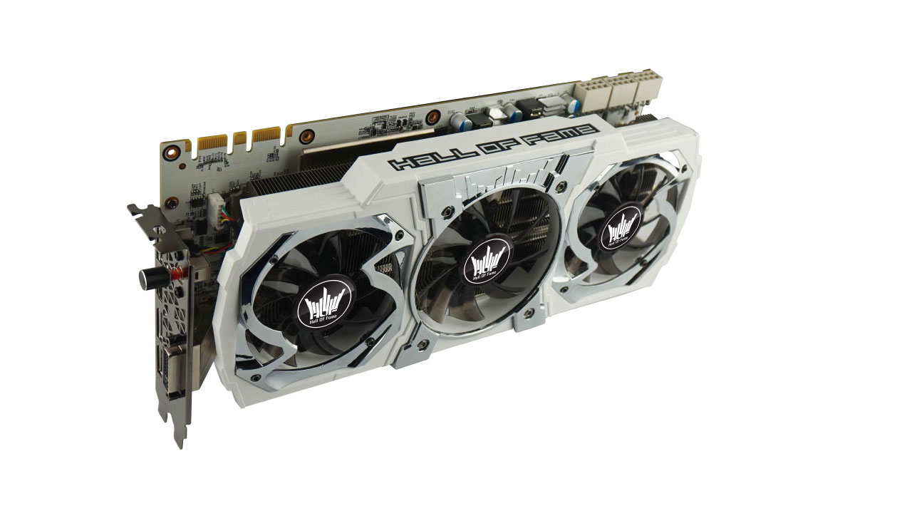 Laut Hersteller ist die GTX 980 Ti HOF LN2 die schnellste Grafikkarte auf Basis eines GTX 980-GPU, mit einem Basistakt von 1203 Megahertz und einem auf 3505 (7010) Megahertz getakteten Arbeitsspeicher. Damit hat schafft sie eine Bandbreite von flotten 336 GB/sec und stemmt Video-Auflösungen bis hin zu 4096 x 2160 Pixeln. Sie liefert drei DisplayPort-Buchsen plus je einen HDMI- und DVI-Anschluss.