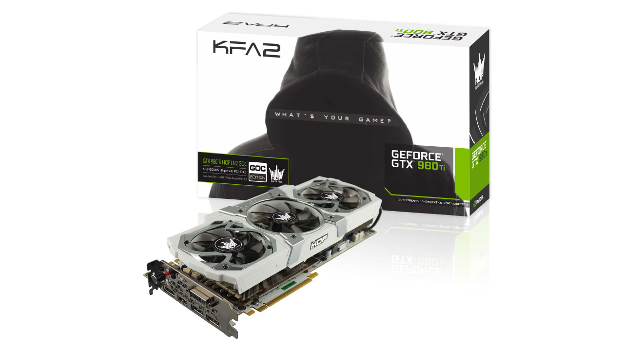 Die vornehmlich für grafisch aufwändige Spiele gedachte KFA2 GTX 980 Ti HOF LN2 ist für 999 Euro zu haben.