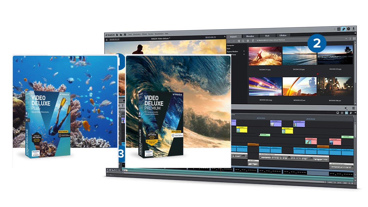 Am Preismodell hat Magix nicht geschraubt: Es gibt weiterhin die Video Deluxe Plus für 100 Euro und Video Deluxe Premium für 130 Euro.