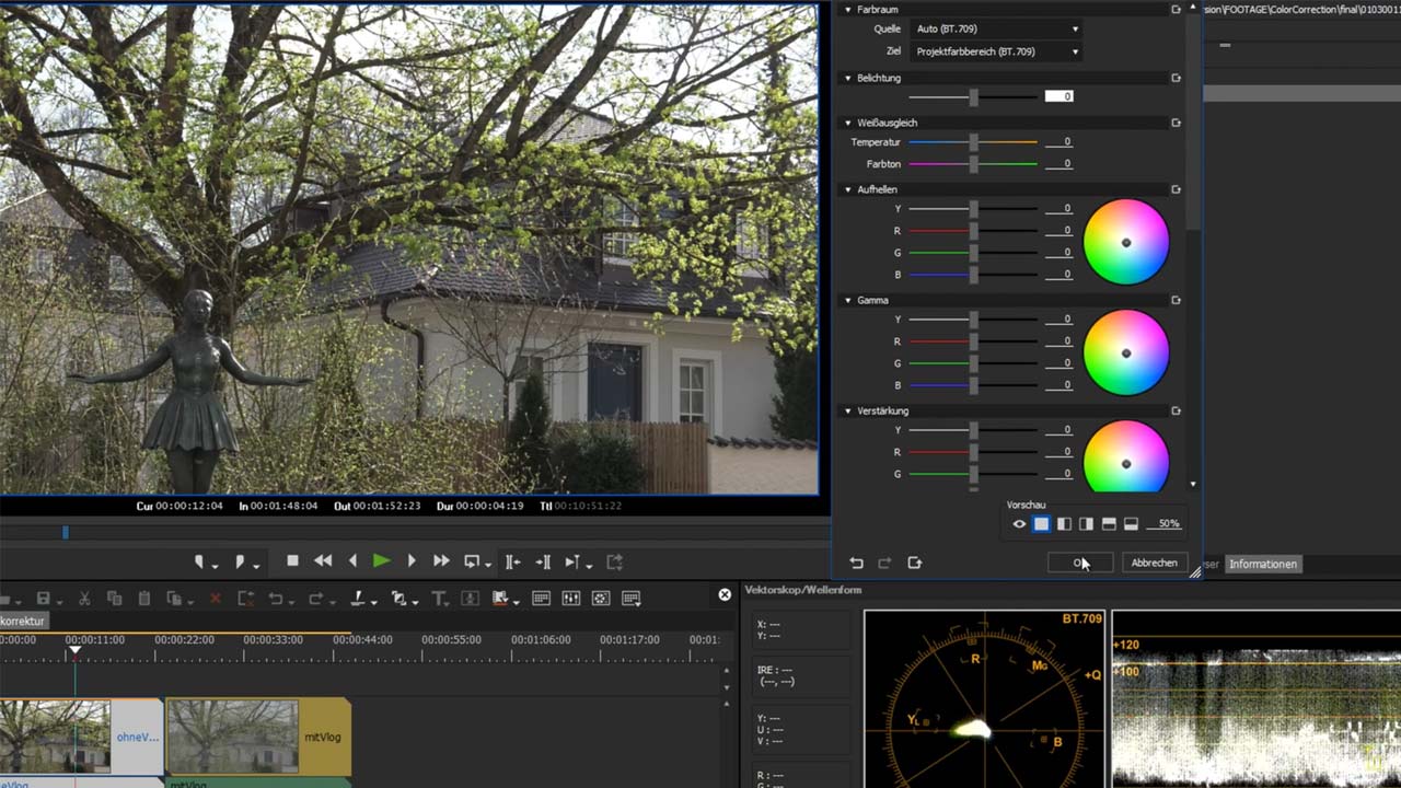 Mit der primären Farbkorrektur lässt sich Kamera-Material im originalen Farbraum, etwa V-Log oder C-Log anpassen. Ein ausführliches Video dazu findet man bei magic multi media auf dem YouTube-Kanal, wovon auch dieses Bild stammt.