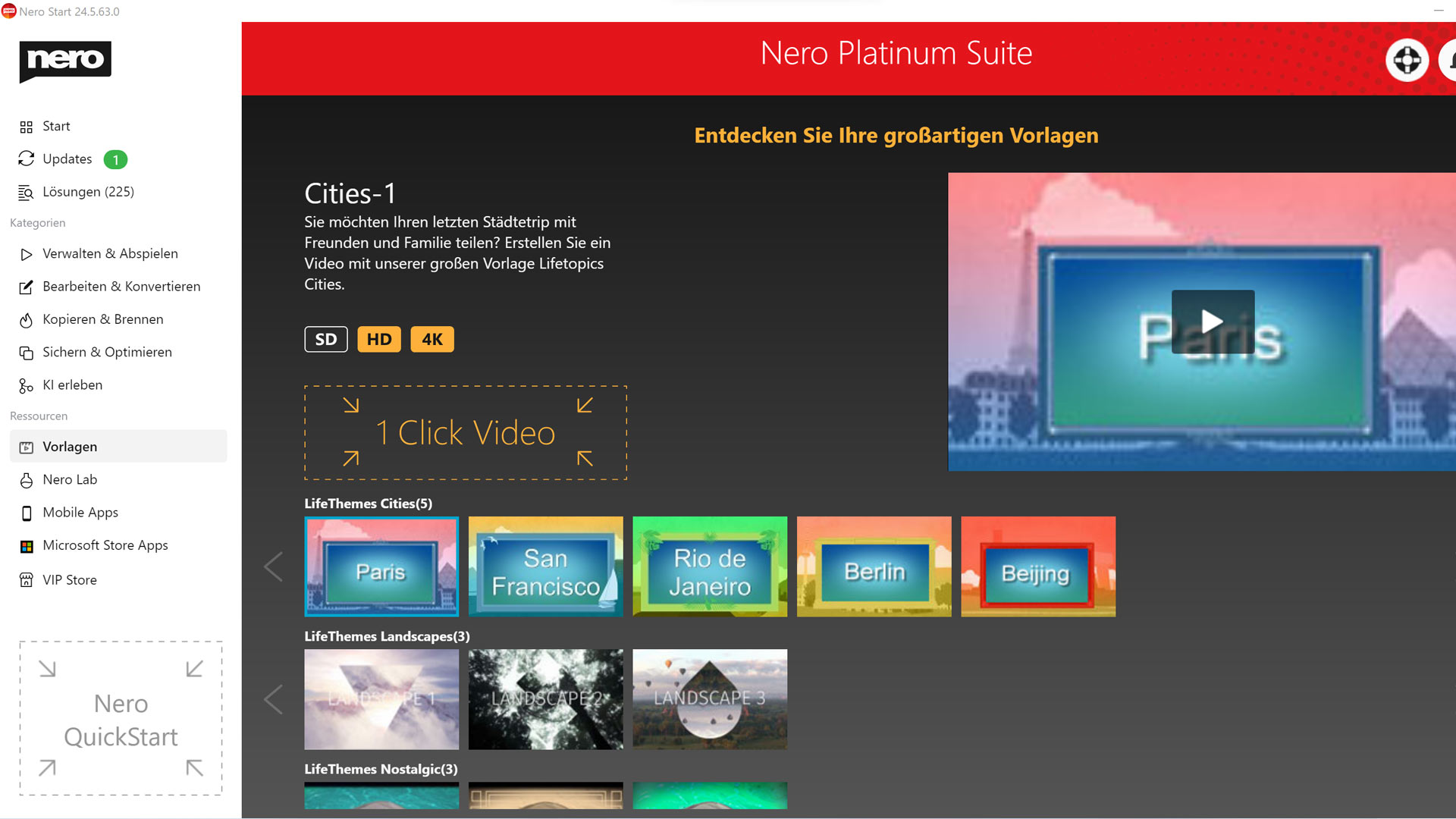 Entsprechend dem Einsteigerstatus liefert Nero Gestaltungsvorlagen mit.