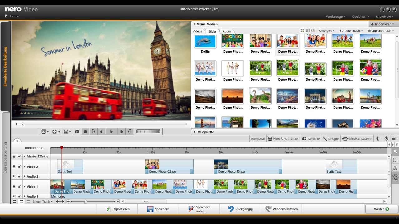Per Nero RhythmSnap kann die Software automatisch auf den Beat der Musik schneiden. Wobei Nero mit Streamless Music Hintergrundmusik aus verschiedenen Genres liefert, die automatisch passend auf die Länge des Projekts gebracht wird.