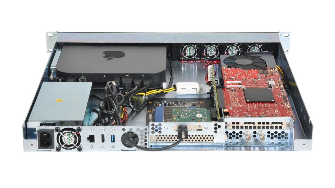 Speziell für die Audio- und Videobearbeitung legt Sonnet die xMac mini Server auf und steckt einen Mac mini in ein 19-Zoll-Rack-Gehäuse mit zwei PCIe-Kartensteckplätzen.