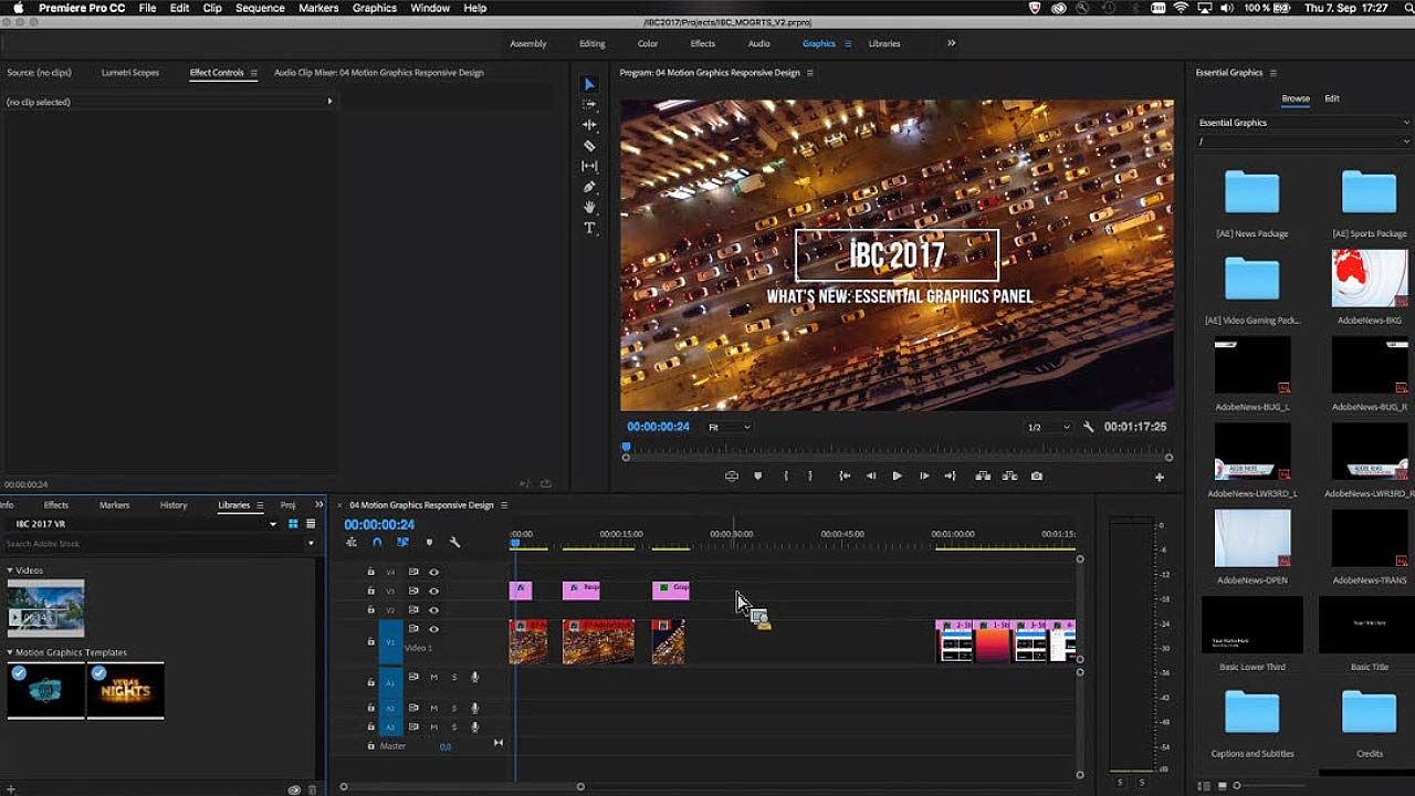 Adobe macht zur IBC einige Ankündigungen bezüglich Verbesserungen für Premiere Pro CC. So werden die Vorlagen für die „Motion Graphics“ aus After Effects ausgebaut, die Virtual-Reality-Verarbeitung optimiert und der Character Animator erscheint in Version 1.0.