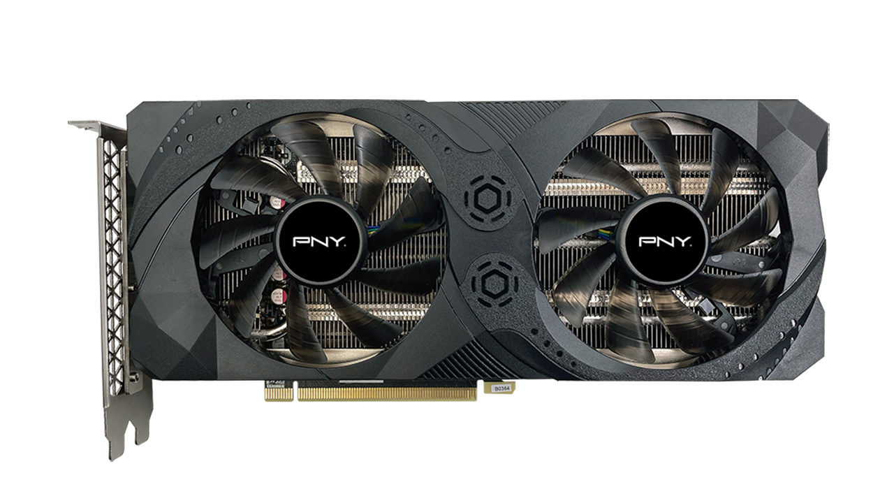 PNY setzt ebenfalls auch ein 2-Lüfter-Design und macht die Grafikkarte damit kleiner und platzstapernder, gerade für kleinere Rechnergehäuse.