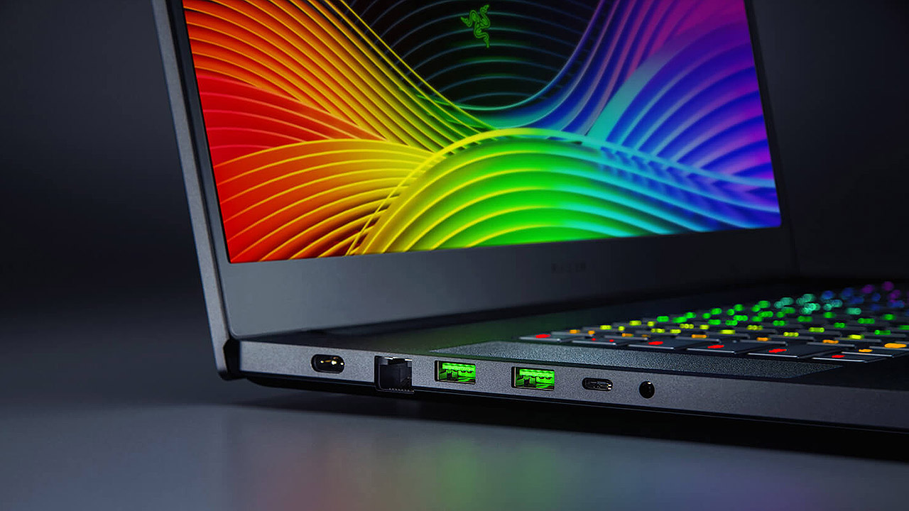 Dazu bekommt man standardmäßig 16 Gigabyte DDR4 Arbeitsspeicher (erweiterbar auf bis zu 64 GB) und eine bis zu 2 Terabyte große PCIe-NVMe-SSD. Ferner lässt sich über einen M.2-Steckplatz noch eine PCIe- oder SATA-SSD nach belieben erweitern. Mit drei USB 3.2-Typ-A und zwei USB 3.2-Typ-C sowie einmal Thunderbolt 3, HDMI 2.0b und einem UHS-III-SD-Kartenleser kommen auch die Konnektivitäts-Optionen nicht zu kurz. Razer integriert zusätzlich noch eine Netzwerkbuchse für 2,5 GbE und setzt auf Wi-Fi 6 sowie Bluetooth 5.0 für kabellose Verbindungswege.