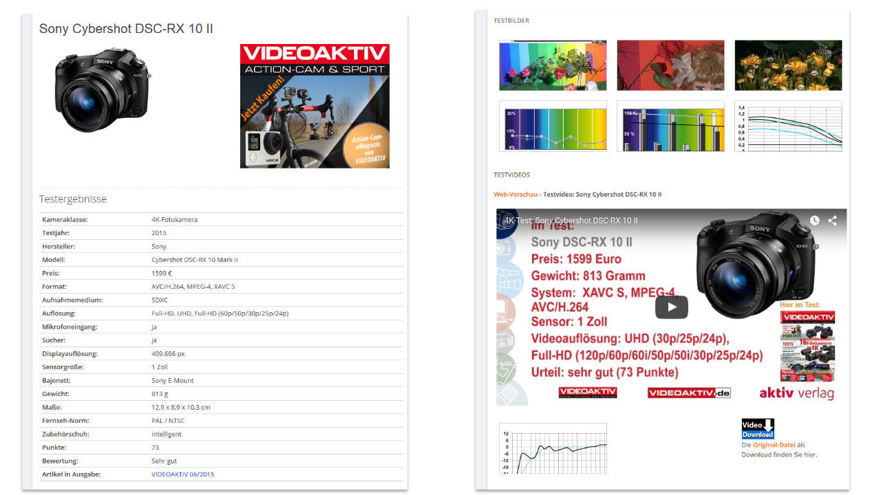 Panasonic Lumix DMC-GH 4 H Panasonic Lumix DMC-GX 8 H Panasonic Lumix DMC-FZ 1000 Panasonic Lumix DMC-FZ 300 Panasonic Lumix DMC-G 70 H Samsung NX 500 Samsung NX 1 Sony Alpha 7R Mark II Sony Cybershot DSC-RX 10 Mark II Neue Ausgabe bestellen: Neben der digitalen Version im PDF-Shop kann man die neue VIDEOAKTIV 06/2015 natürlich im Print-Shop versandkostenfrei bestellen und erhält diese dann innerhalb weniger Tage direkt in den Briefkasten. Heftübersicht: Inhalt VIDEOAKTIV 06/2015Newsübersicht - InternCamcorder-Vergleich