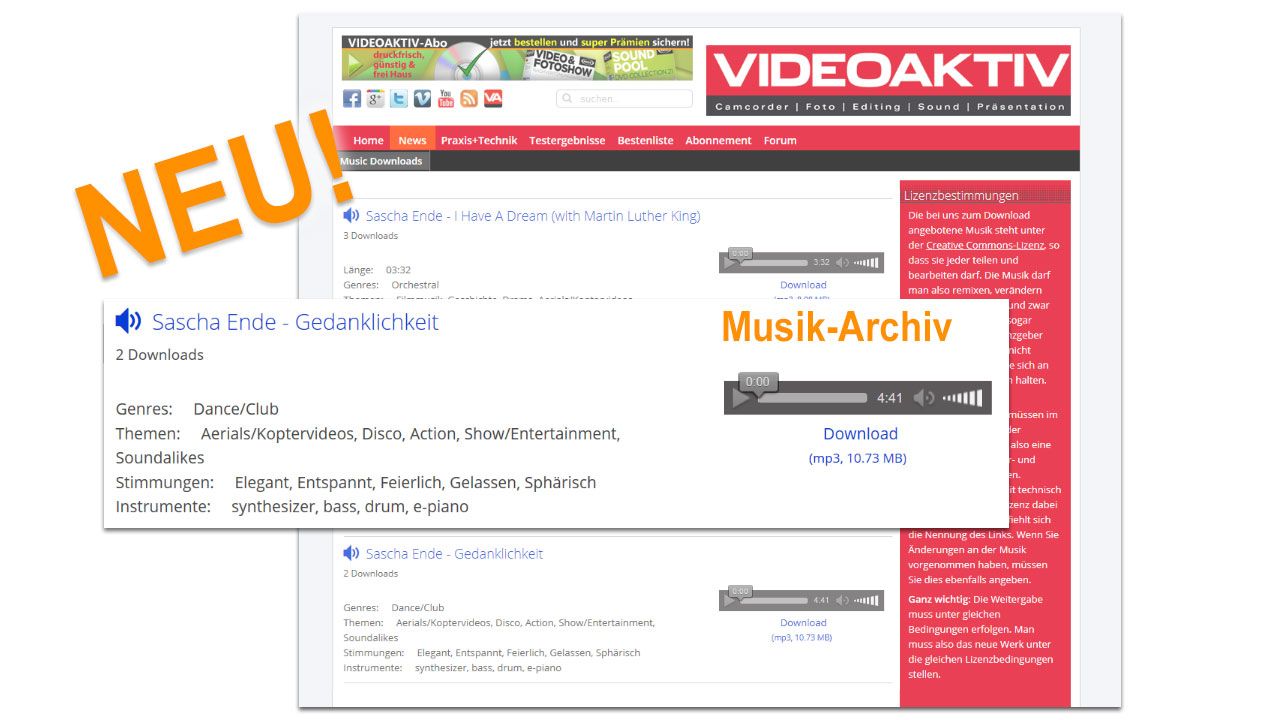 UPDATE - neuer Song online! Seit geraumer Zeit setzten wir in unseren Videos Musik von Sascha Ende ein, auf dessen Anregung wir nun einen exklusiven Musik-Download-Bereich eröffnen – mit neuen Titeln jeden Mittwoch.