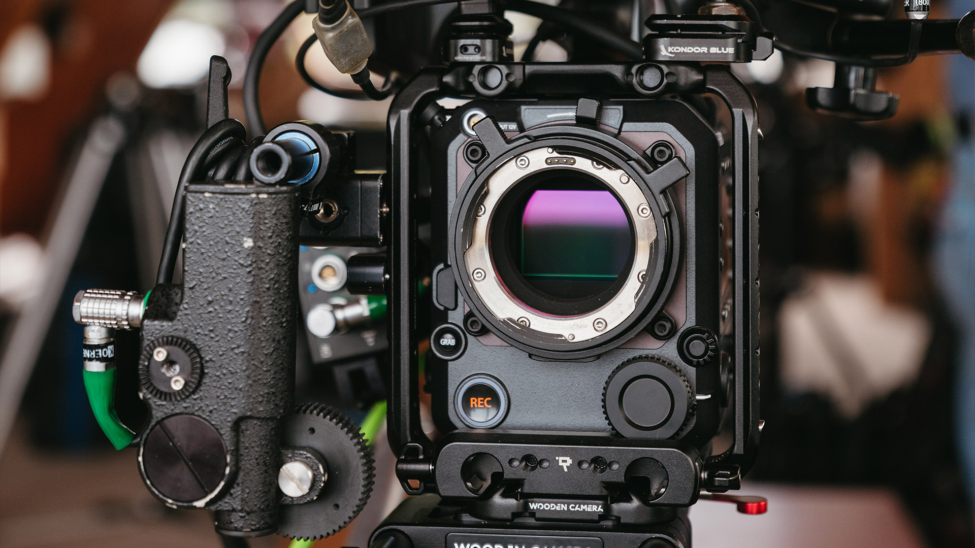 Die Kamera verfügt über einen 5-Zoll-Monitor zur Bildkontrolle sowie zwei seitliche 3-Zoll-Displays zur Kontrolle und Einstellung von Kamera-Parametern.