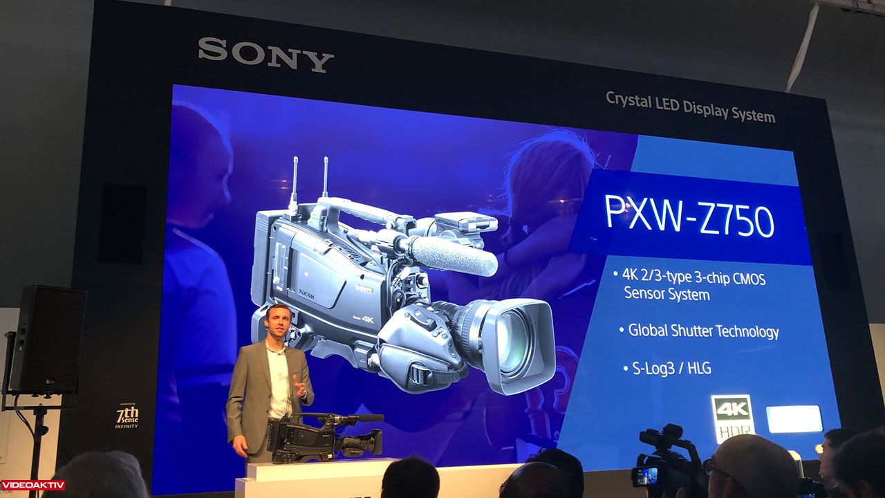 Ergänzend zur brandneuen Sony PXW-FX9 zeigt der Hersteller auf der IBC noch den 4K-Schutercamcorder PXW-Z750, der mit einem 2/3 Zoll-Sensor-System arbeitet.
