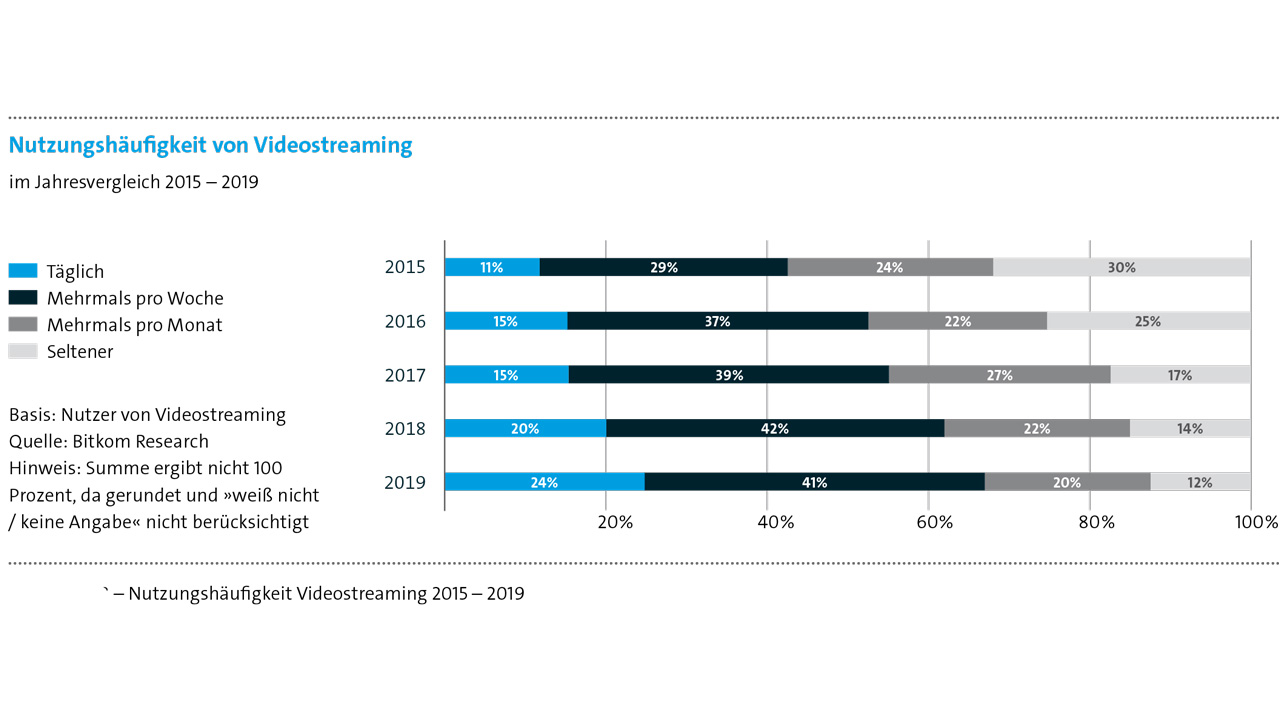 Auch die Anzahl der Nutzung pro Woche hat deutlich zugelegt. Satte 65 Prozent streamt Videos mehrmals die Woche.