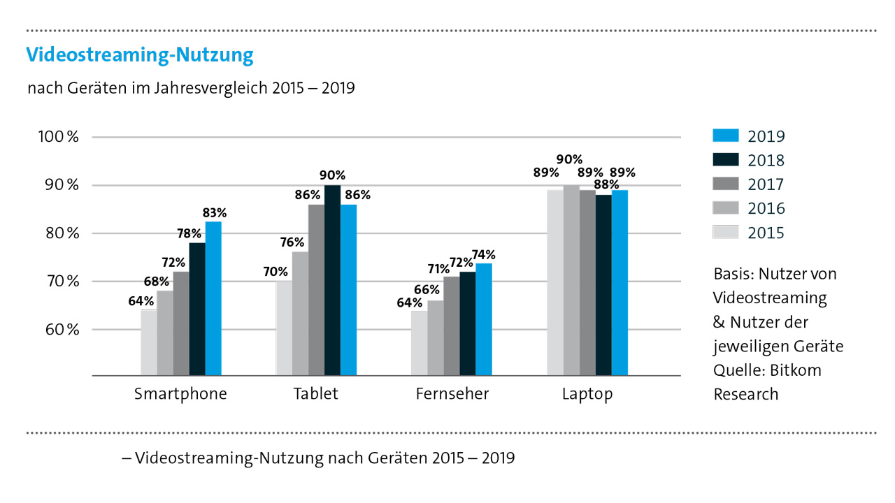 Grundlage der Angaben ist eine repräsentative Befragung, die Bitkom Research im Auftrag des Digitalverband Bitkom durchgeführt hat. Dabei wurden 1.007 Personen in Deutschland ab 16 Jahren telefonisch befragt, darunter 822 Internetnutzer. Die Fragestellungen lauteten: „Welche der folgenden Möglichkeiten nutzen Sie zumindest hin und wieder, um sich Videos per Stream anzuschauen?“, „Wie häufig nutzen Sie Video-Streaming-Dienste im Internet?“ & „Wie häufig nutzen Sie die folgenden Geräte, um Videos zu streamen?